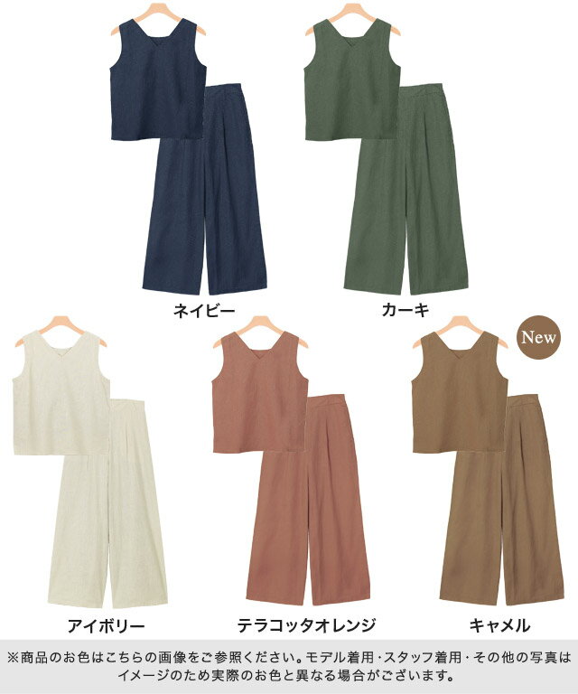 着回し自由自在!季節感漂う“綿麻Vネックノースリーブセットアップ” 【素材】 麻と綿の入った生地は清涼感があり、涼しげな印象に。